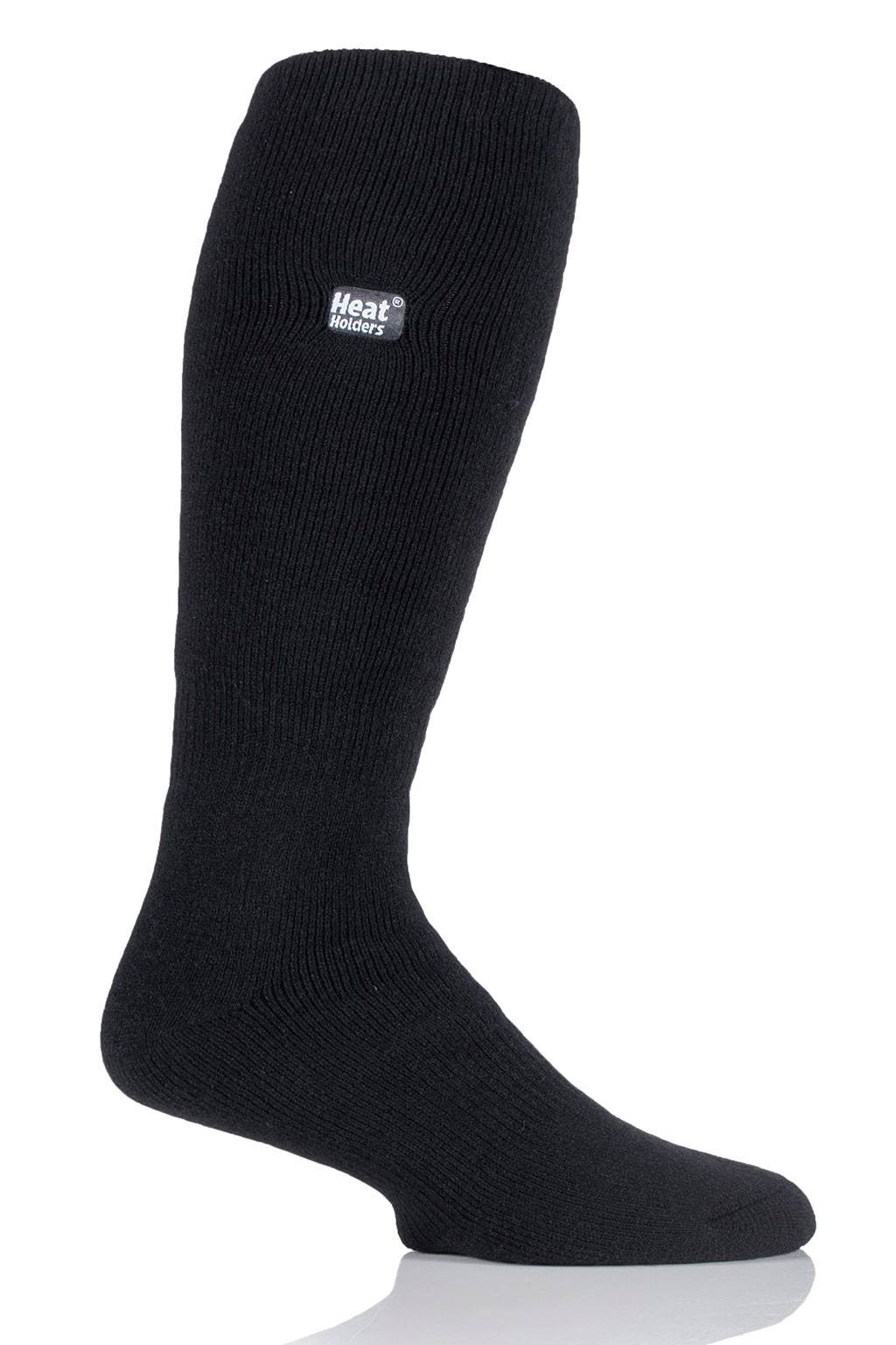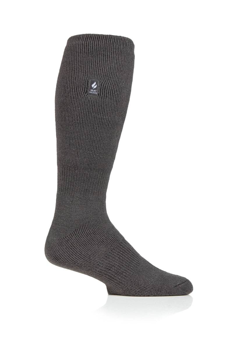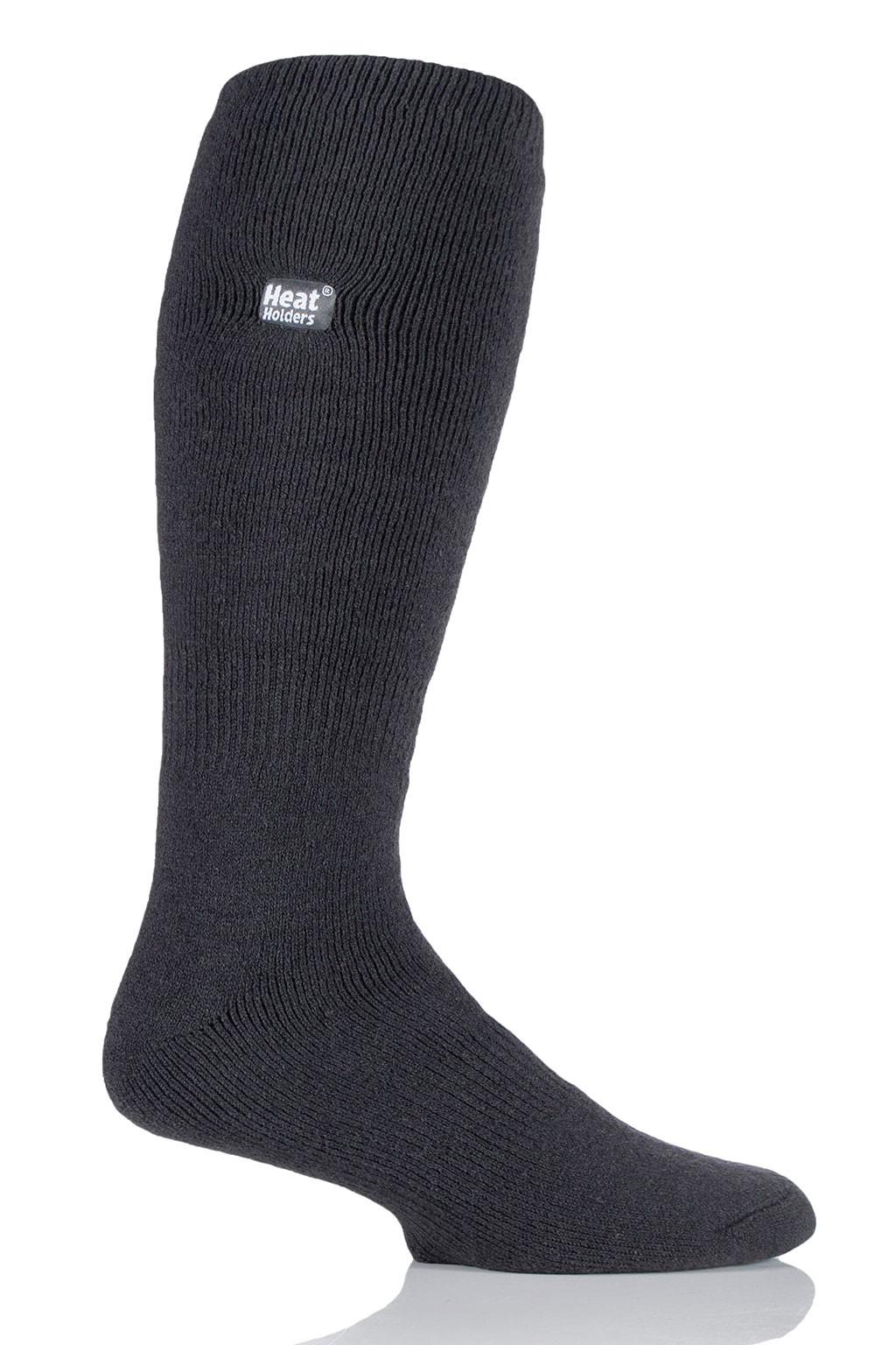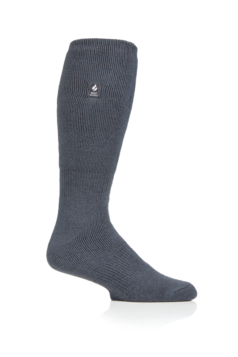 Keep feet warm on the coldest of days and pull on this pair of solid color, medium thickness, long length Heat Holders® for men, the warmest thermal sock. No More Cold Feet!®