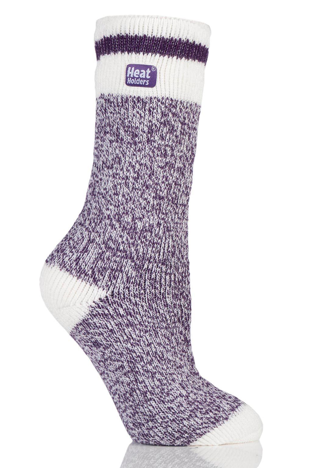 Keep feet warm on the coldest of days and pull on this pair of block twist style crew length Heat Holders® for women, the warmest thermal sock.