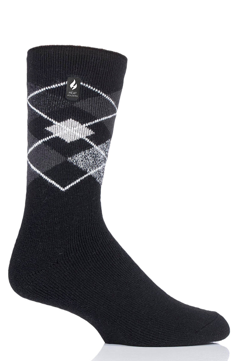 Keep feet warm on the coldest of days and pull on this pair of argyle pattern, medium thickness, crew length Heat Holders® LITE™ for men, the warmest thermal sock.