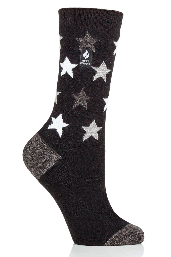 Keep feet warm on the coldest of days and pull on this pair of solid colored, star patterned, lightweight, crew length Heat Holders® ULTRA LITE™ for women, the warmest thermal sock.