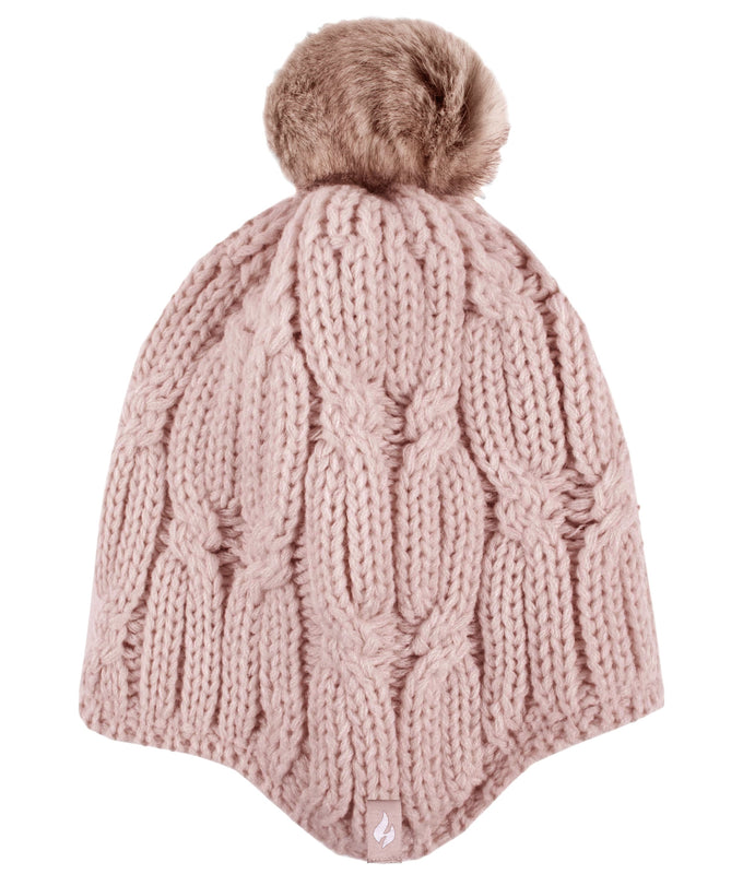The Heat Holders® Women’s Nikki Cozy Ears hat is a stylish cable knit hat with a wispy pom-pom.