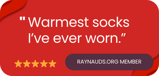 "The majority of RAYNAUDS.ORG testers found the socks helped them to better tolerate the cold, reporting less pain in their feet and toes, reduced severity of Raynaud’s attacks, and lower attack frequency.”
