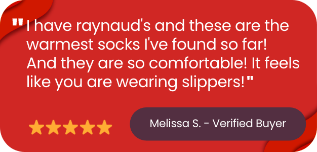 "The socks were warmer and more comfortable than any other sock I've bought to address my Raynaud's issues.Thank you!!!" - Michelle S.