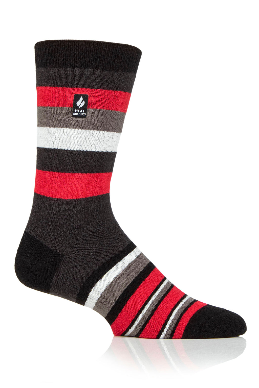 Keep feet warm on the coldest of days and pull on this pair of fashionable multi-stripe, lightweight, crew length Heat Holders® ULTRA LITE™ for men, the warmest thermal sock.