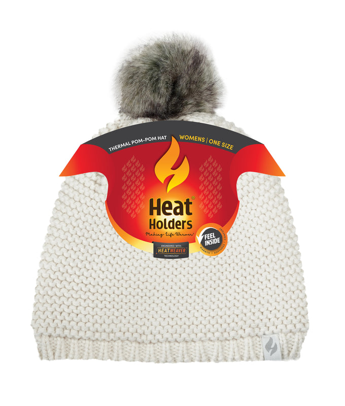 The Heat Holders® Women's Paris Purl Stitch Hat is a cute, knitted hat with pom-pom. Made with advanced thermal yarns and our luxurious HeatWeaver® lining, the Heat Holders® Paris Hat is warm, super soft, and comfortable, providing superior insulation that keeps you warmer for longer.