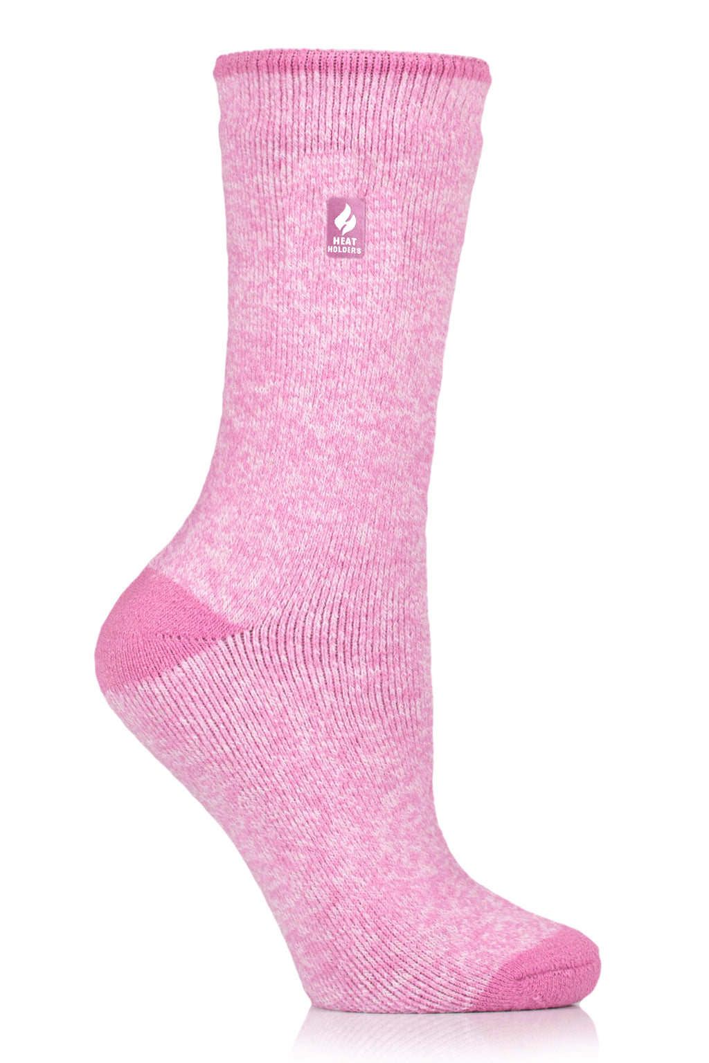 Keep feet warm on the coldest of days and pull on this pair of twist color, medium thickness, crew length Heat Holders® for women, the warmest thermal sock. No More Cold Feet!®